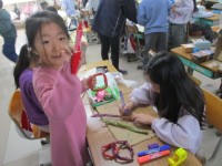 生活科で「野菜」を育てています。,花が咲いたり,小さな実ができたりと…だいぶん大きく成長しました。子どもたちは,自分の野菜をうれしそうに観察していました。