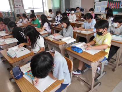 俳句に取り組みました。17音の文字で季節の感じたことや思いを表現。子どもたちに作品を見せてもらい,楽しいかったです。
