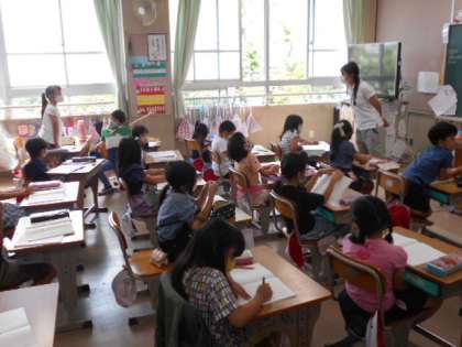 今日の「スイミー」の勉強は,「ぼくが,目になろう」とスイミーがいった場面。大きな魚を追い出した魚たちの様子や気持ちを考えました。音読もしっかり声が出ていて上手でした。