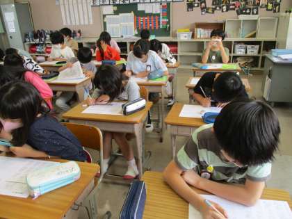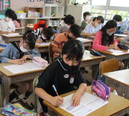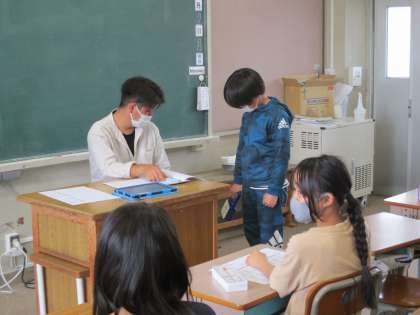 小数のかけ算の習熟プリントをしました。また順番に握力の測定をしました。