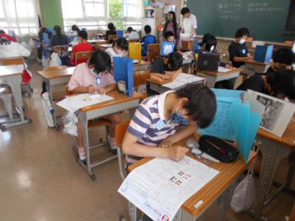 国語のテストにチャレンジ。教室の雰囲気がテストにしっかり取り組んでいる感じで,さすが6年生でした。よかったです。