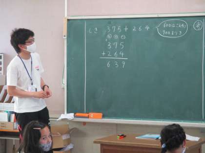 3桁の数+3桁の数の繰り上がりのある足し算の答を予想し,計算の仕方を考えました。
