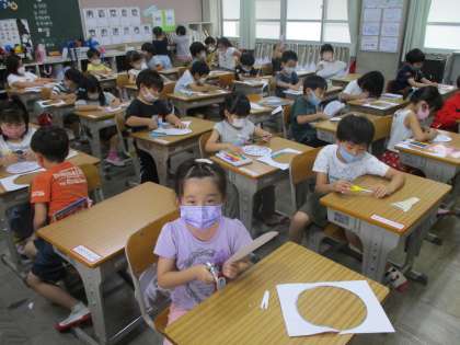 国語で「おおきなかぶ」の劇をします。今日は,セリフを決めるのとお面づくりをしました。劇の準備をやる気いっぱいで取り組んでいます。発表が楽しみです。