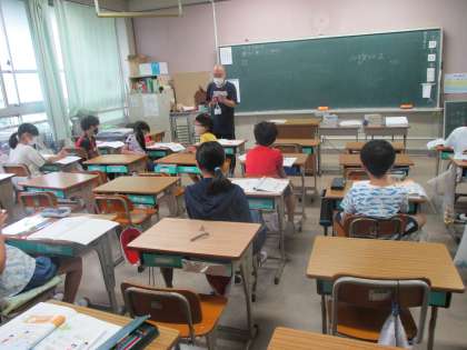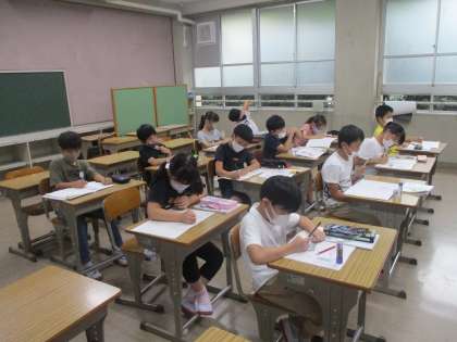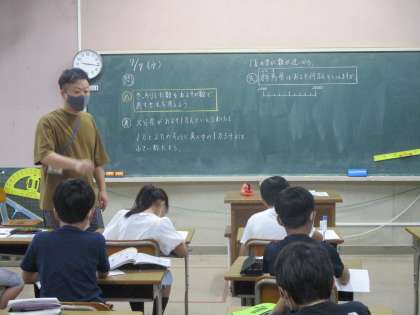 算数で「がい数」を勉強しています。めあては「きっちりした数をおよその数で表す方法を考えよう」。線分図を使いながら,およその数をの決め方を確認しました。少し「がい数」のことが分かったようです。
