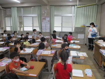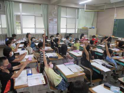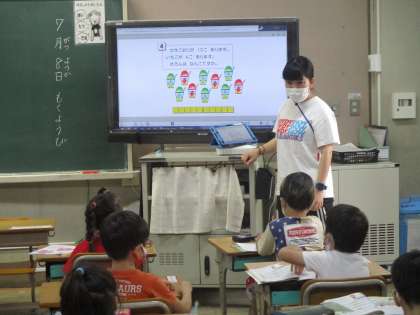 算数で「ひき算」の勉強をしています。今回は「ひき算」がわかる言葉がありません。問題文から「ひき算」だとわかるポイントをみんなで考えました。子どもたちは,そのポイントが分かったようです。