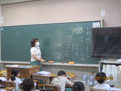 漢字の「空」を練習しました。
