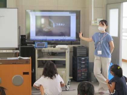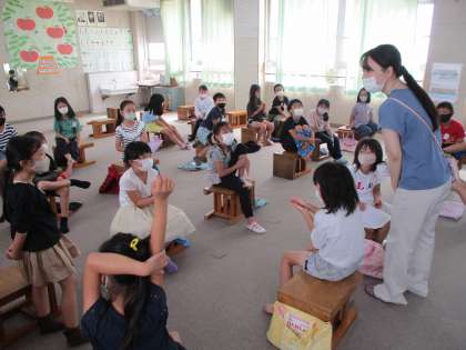 音楽の時間です。今日は「虫のこえ」に取り組みました。実際の虫の鳴き声を聴いて,聞こえた通り鳴き声を発表。そのあと「虫のこえ」の曲を聞きました。子どもたち,曲のイメージが持てたかな?