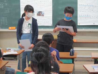 3時間目に,夏休みの自由研究の報告会をしました。夏休みに,自分が取り組んだ研究や工作などを友だちに紹介。工夫したところや苦労したところを交流しました。来年の自由研究に生かしてね。