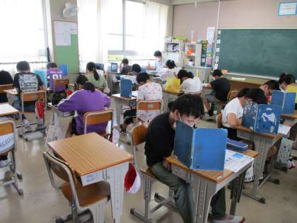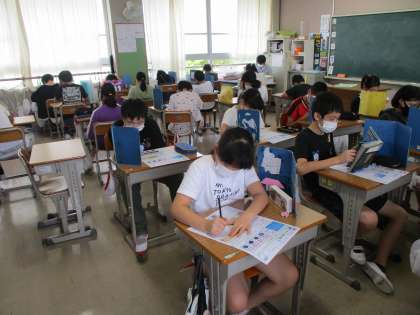 理科の時間です。今日は「水溶液の性質」のテストに取り組みました。実験でわかった水溶液のことを思い出しながら,テストをがんばったとことでしょう。結果はどうだったかな?