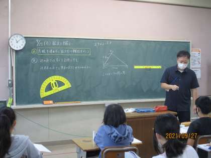 2つの辺の長さとその挟む角の大きさがわかっているときの三角形の縮図と拡大図の描き方を考えました。