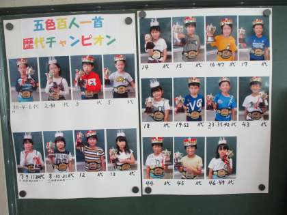 1時間目は「百人一首」の対抗戦。歴代チャンピオンも「49人」。子どもたちの取り組む姿にも真剣さが伝わって,かっこいいと思います。50代目のチャンピオンは,だれがなるのかな?