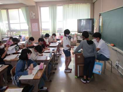 算数の時間です。「分数のたし,ひき算」を勉強しています。今日のめあては「学習のまとめをしよう」。計算の仕方を確認して,教科書の「たしかめポイント」の問題にチャレンジ。しっかり復習できたと思います。