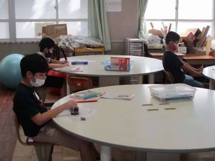 なかよし2の算数の時間です。「平均」の勉強をしました。先生の説明を聞きながらプリントにチャレンジ。がんばりました。