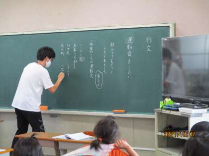 友達の作文「運動会」を読んで,1年生の時の運動会のことを思い出して,話し合いました。