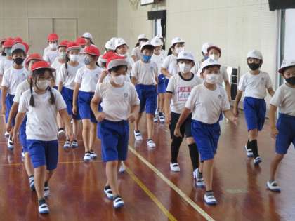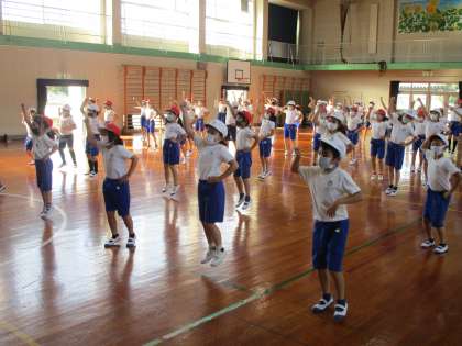 5時間目,ダンス「なないろ」の練習に取り組みました。体育館でで入場から1曲目のフィニッシュまでを練習。