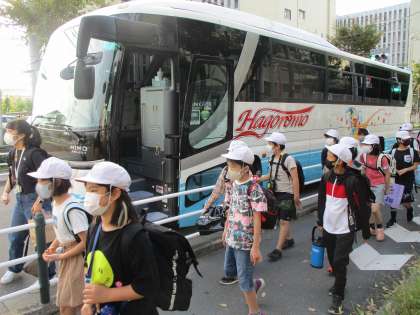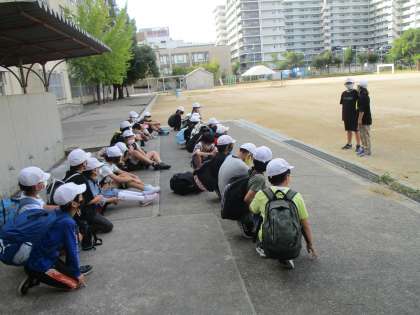 5年生が,一日臨海学校に行きました。目的地は,大阪府立海洋センター。出発式をして元気に出発。一日,海での活動を楽しんでくることでしょう。