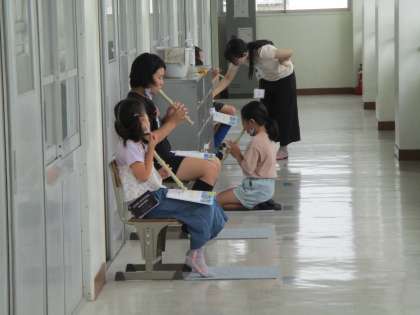 音楽の時間です。リコーダーに取り組みました。曲は「とどむよう このゆめを」。先生のアドバイスもをもらいながら,しっかり取り組んでいました。「リコーダー検定」も頑張ってね。