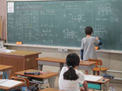 算数の時間です。「割合」の勉強をしています。先生問題にチャレンジ。わかったポイントは「2つの数の関係を比べるときは,一つの数がもう一つの数の何倍になるかで比べる。この何倍の数にあたるのを割合という」。「割合」のことが,分かったかな。