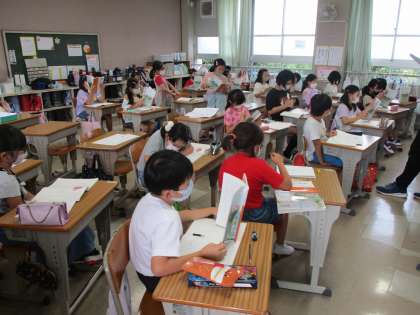 「「ちいちゃんのかげおくり」を勉強しています」(3年生)