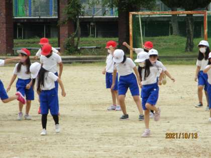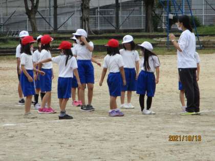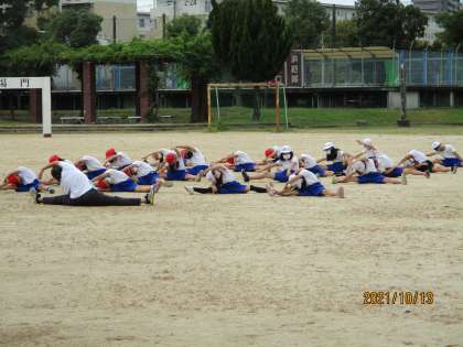 準備体操の後50メートル走の入場の仕方,並び方を練習しました。