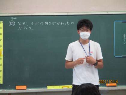 なぜ,時間がたつと影の向きが変わるのか考えました。