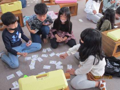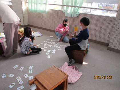 鍵盤ハーモニカの演奏の順番を待っている間,音楽カルタをしました。