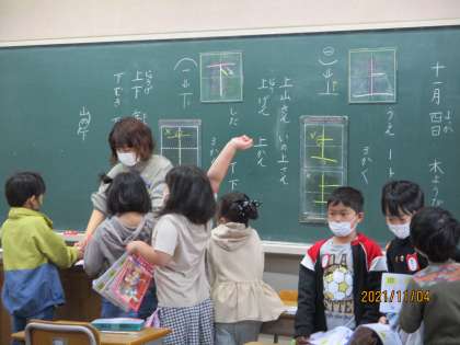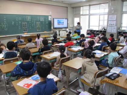漢字の「上」「下」を学習した後,「海のかくれんぼ」のふりかえりをしました。