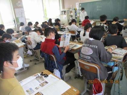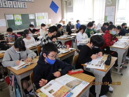 社会科の勉強です。今は「江戸時代」を勉強中。今日は「歌舞伎について調べよう」。資料集や教科書をもとに,先生からの課題を調べました。歌舞伎のこと,どんなことが分かったかな?