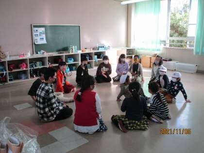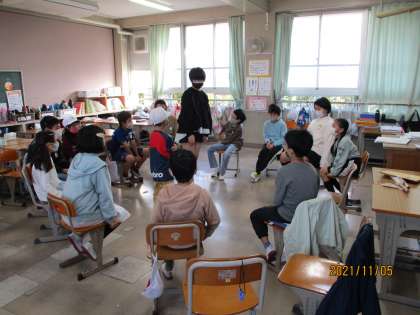 体育館・3年生教室・プレイルームでの集会の様子です。