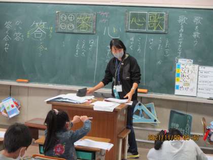 「今日の漢字は「歌」「心」「答」の3つ」(2年生)