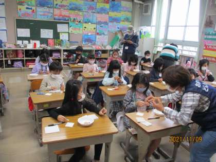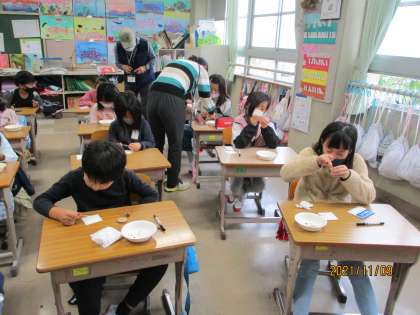 大泉どんぐりの会の方々にお越しいただき,どんぐりでかわいいトトロの人形を作りました。