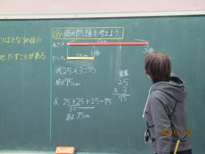 〇〇の何倍の数を求めるのに,何算を使えばよいか考えました。