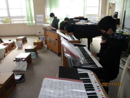 パート別にハピネスの演奏の練習をしました。