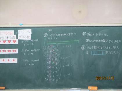 1の段の九九を学習して,気が付いたことについて話し合いました。