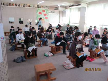 「もみじ」を歌った後,リコーダーで「オーラリー」の練習をしました。