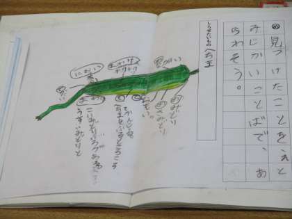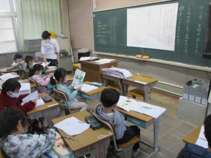 国語の時間です。「しらせたいな 見せたいな」の勉強をしています。自分が知らせたいものをワークシートにまとめました。それをもとに,いよいよ文章を作ります。どんな文章ができるか楽しみです。