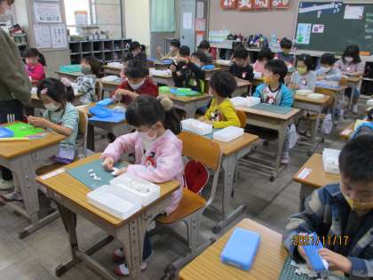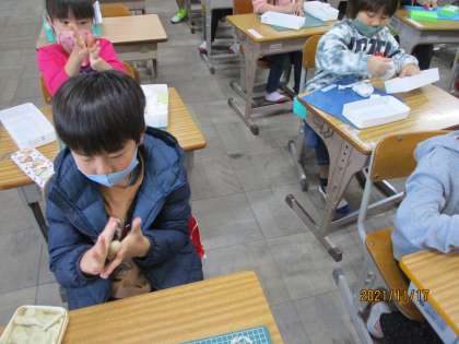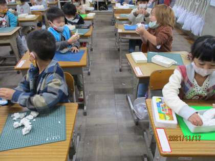粘土を使い,年度ケースを弁当箱に見立てて,お弁当を作りました。