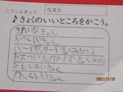 「くるみ割り人形」の「行進曲」を聴いて,思ったことをシートに書きました。