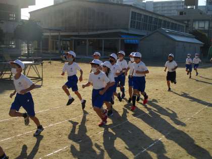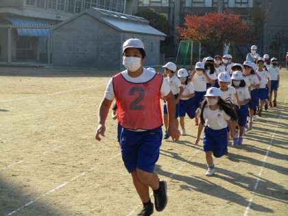 今日は,2,4,6年生のかけ足です。寒さにも負けず,元気にかけ足をがんばって走りました。今回は,6年生の体育委員会の子どもたちがペースメーカーになってがんばってくれました。