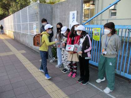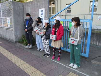 募金活動の二日目。担当の子どもたちが「募金活動にご協力よろしくお願いします!」と呼びかけ頑張ってくれました。二日でたくさんの募金があつまったと思います。ありがとうございました。