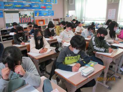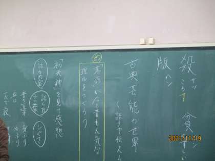 「古典芸能の世界」学習でセンスを使う落語のしぐさを調べました。