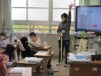 算数の時間です。「かけ算の九九」を勉強しています。金曜日の続きで「九九のきまりを見つけよう」をチャレンジ。「九九表」からいろいろな「九九のきまり」に気が付きました。「九九」のことがよくわかったようです。