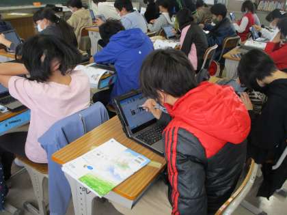外国語の時間です。「スポーツ選手の紹介シート」に取り組みました。「出身地」「競技種目」など…自分の好きなスポーツ選手を英語で紹介しました。苦労していましたが,がんばって取り組みました。うまく紹介できたかな?