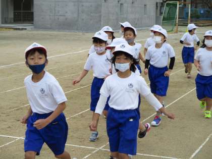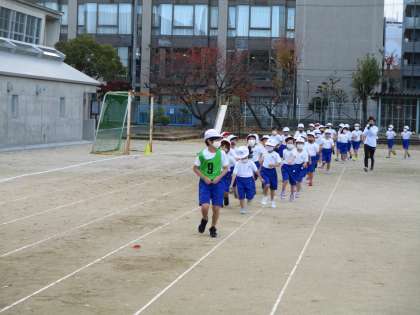 今日は1,3,5,年生の駆け足。寒い中,今日も元気にかけ足にがんばって走りました。時間は,5分間です。