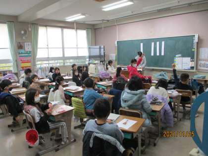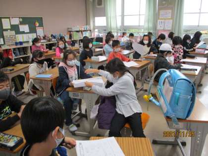 1年生・2年生・3年生の様子です。今日はエチケット検査(ハンカチ・ハナカミ・つめ切り)の日です。