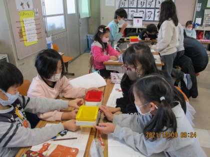 同じ重さくらいのものを天秤を使って重さ比べをしました。