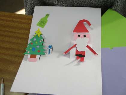 図工の時間です。「クリスマスカード」に取り組んでいます。ツリーやサンタさんが,とび出します。きっと,かわいい素敵なカードができそうです。もらった人は,大喜びですね。
