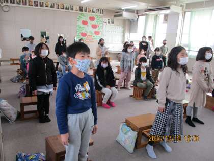 「にじ」を歌った後,冬休みのリコーダーの手入れの仕方を教わりました。