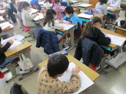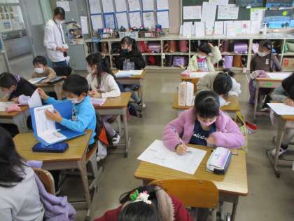 算数の時間です。今まで勉強したことをプリントで確認。今日は,二けたのたし算とグラフ。先生のアドバイスももらいながら,がんばって取り組みました。しっかり確認できたかな?