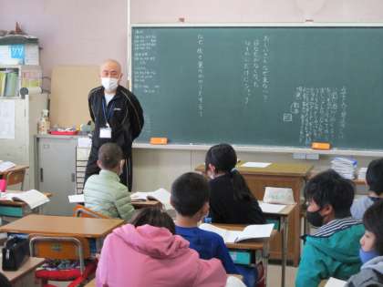 国語の時間です。「プラタナスの木」を勉強中です。今回は最後の5場面。場面のまとめをして内容を確認。「おじいさんは,なぜ来ない」というポイントについて,話し合いました。子どもたちの考えた理由は…?